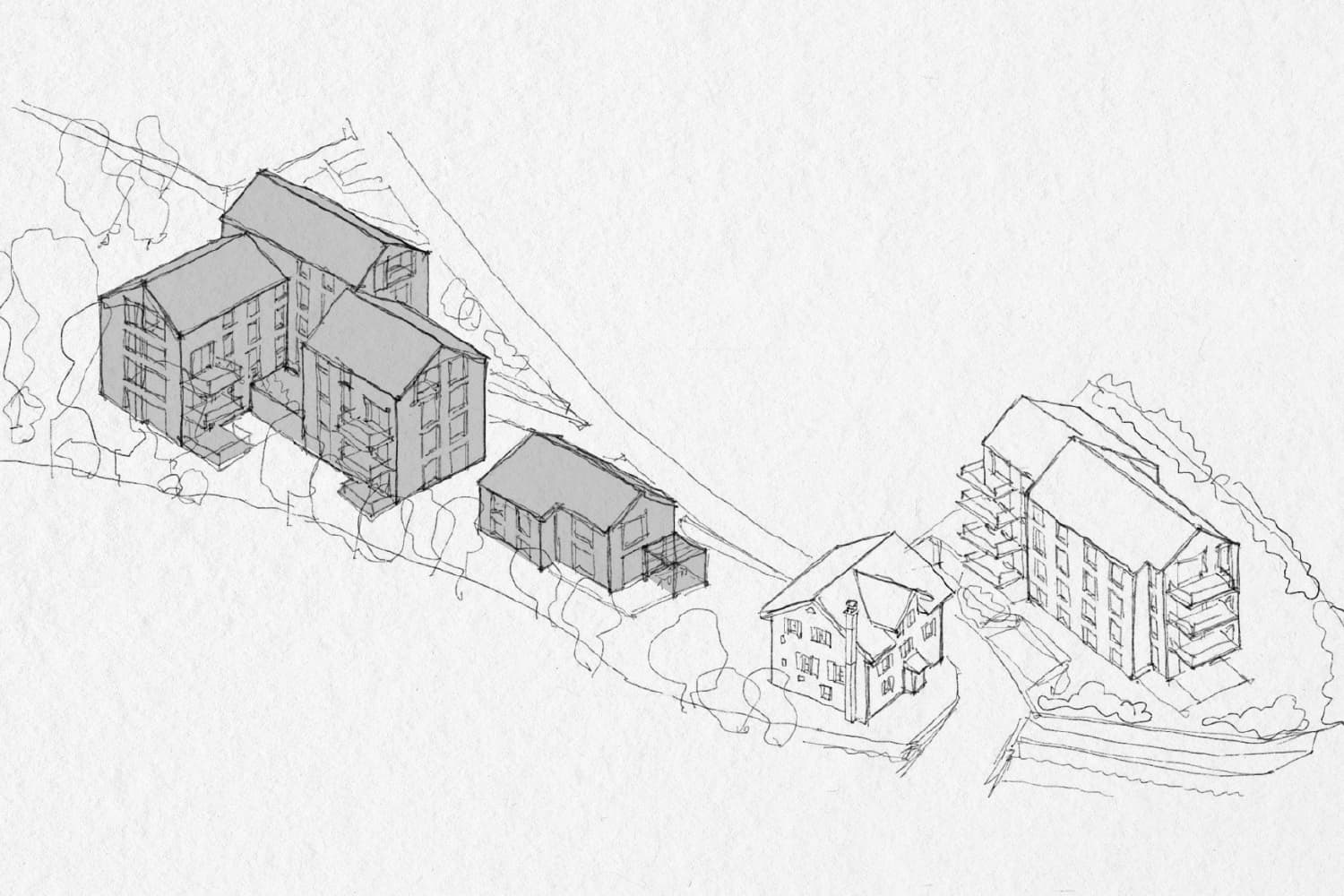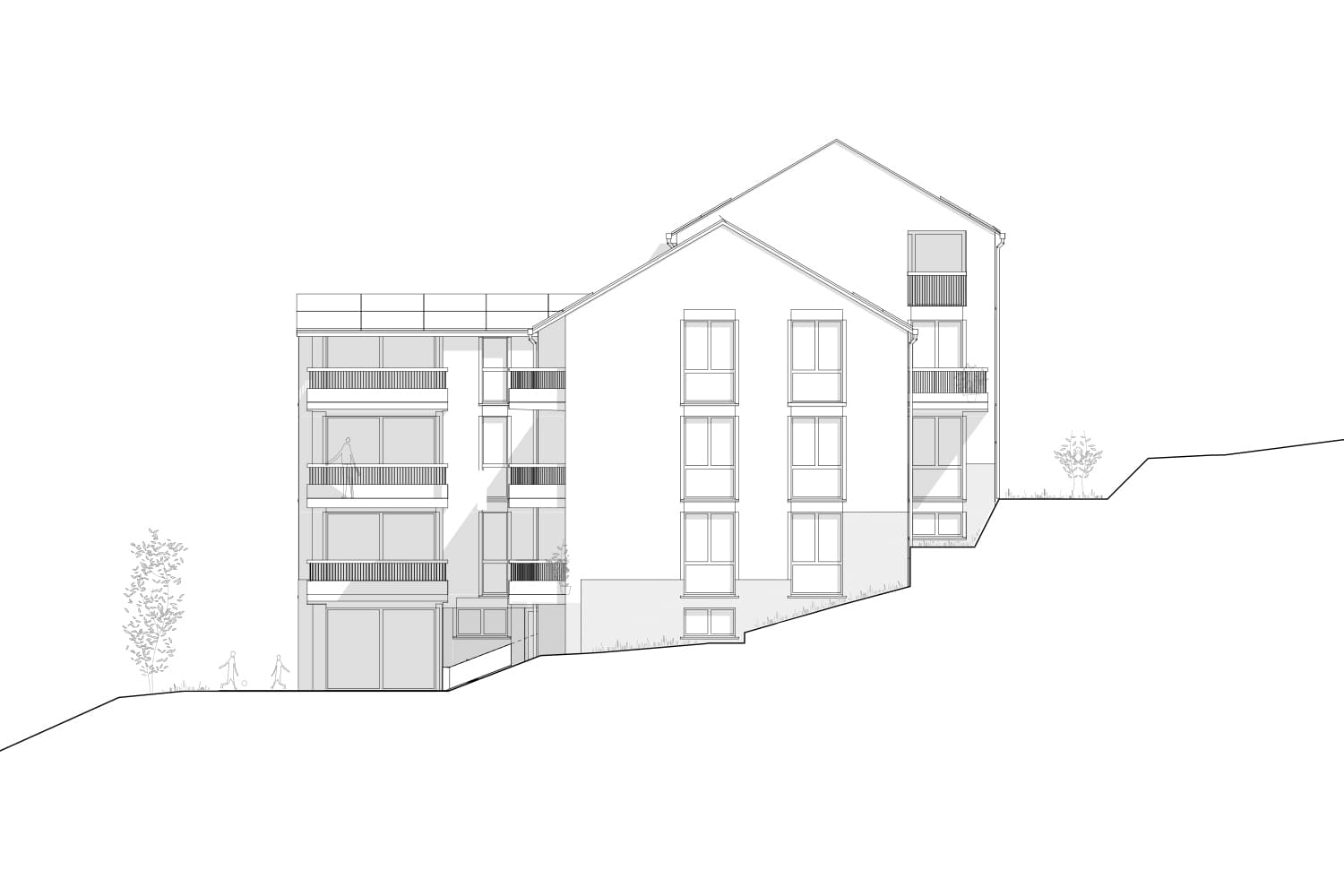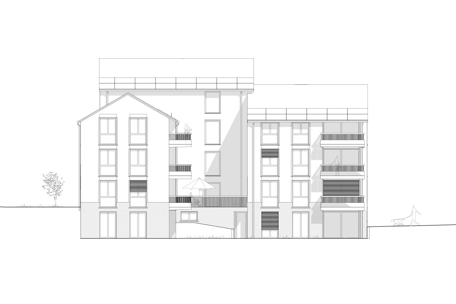 Das Mehrfamilienhaus und das Einfamilienhaus an der Chilegass ergänzen die bestehende Bebauung als jeweils eigenständige Baukörper und reagieren in Setzung und Volumetrie auf die natürliche Topografie. Beide Gebäude orientieren sich an der kleinteiligen Dorfstruktur und vermeiden lange, durchgehende Fassaden. Durch Staffelungen und gezielte Proportionen treten sie auch in der Vertikalen als einzelne Einheiten in Erscheinung und vermitteln zwischen Strassenraum, Bachlauf und angrenzender Landschaft. Die Wohnungen beziehungsweise Wohnbereiche sind auf unterschiedliche Lebensmodelle ausgerichtet und ermöglichen flexible Nutzungen über die Zeit. Öffnungen und Aussenräume richten sich zu Grünflächen und Freiräumen aus und schaffen gezielte Blickbezüge. Konstruktion und Materialwahl setzen auf robuste, langlebige Lösungen mit geringem Unterhaltsaufwand. Hindernisarme Zugänge, energieeffiziente Gebäudetechnik sowie klare, funktionale Grundrisse sichern eine nachhaltige Nutzbarkeit und lassen individuelle Anpassungen im Rahmen der baulichen Möglichkeiten zu.